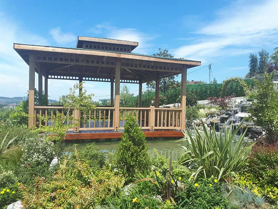 Bahçe düzenleme yalnızca estetik değil aynı zamanda yaşam alanı kazandırma sürecidir. Göletler, taş yollar, kamelya ve oturma köşeleri bahçeye fonksiyon katmaktadır. Ahşap pergola altında oluşturulan bir oturma alanı, gece loş aydınlatmalarla huzur verici bir atmosfere dönüşmektedir.